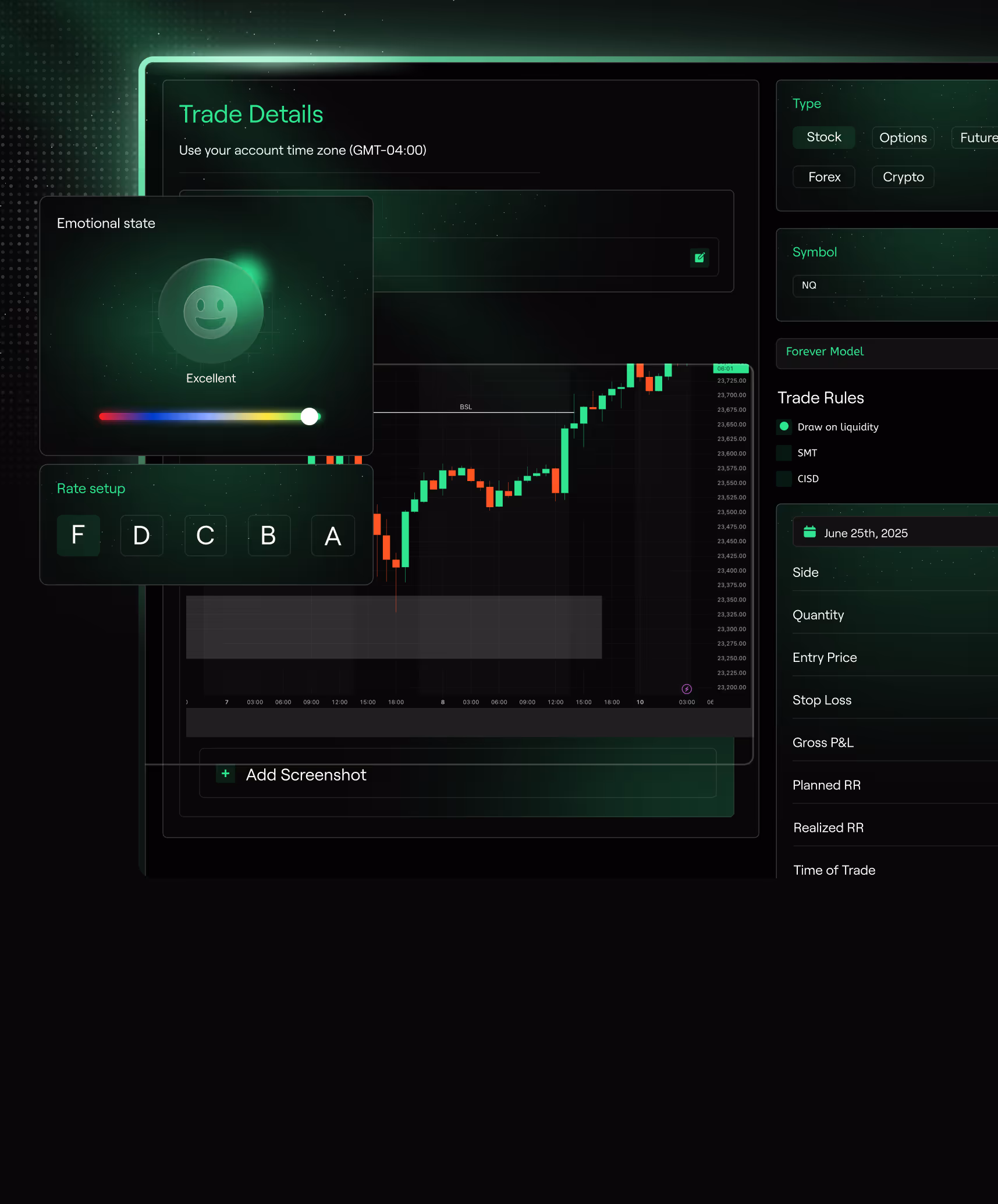 Stop guessing. Our AI recognizes your patterns, mindset, and blind spots, then delivers custom feedback to help you trade smarter, more consistently, and without hesitation.